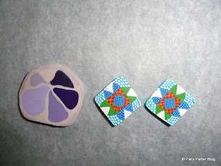 Then I cut these.  This was actually very easy, as you just slice off from a tube.  The colors were already there.  The shell will have a hole drilled for a pendant, and the others for earrings.